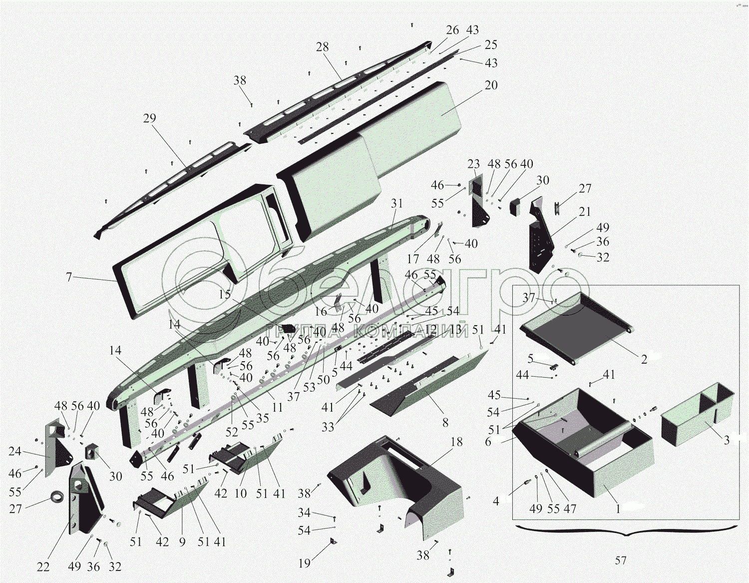 Каталог запасных частей к технике: МАЗ-631705. Установка панели приборов 63172-5300014
