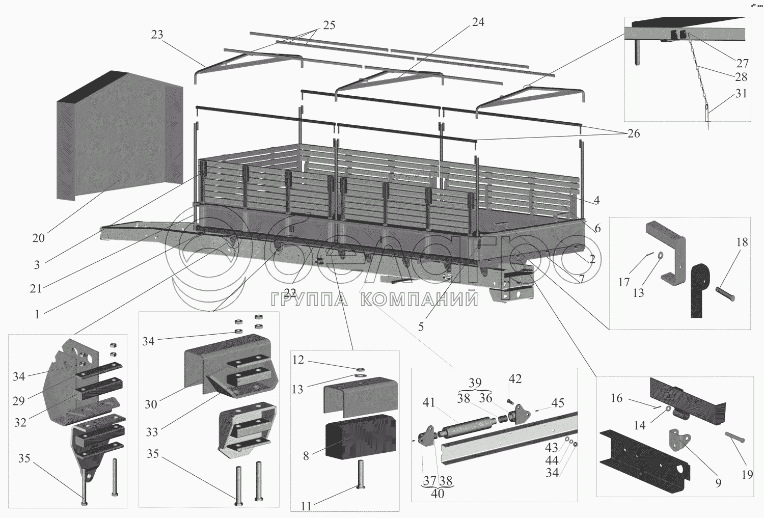Каталог запасных частей к технике: МАЗ-631705. Установка платформы 6317-8500002