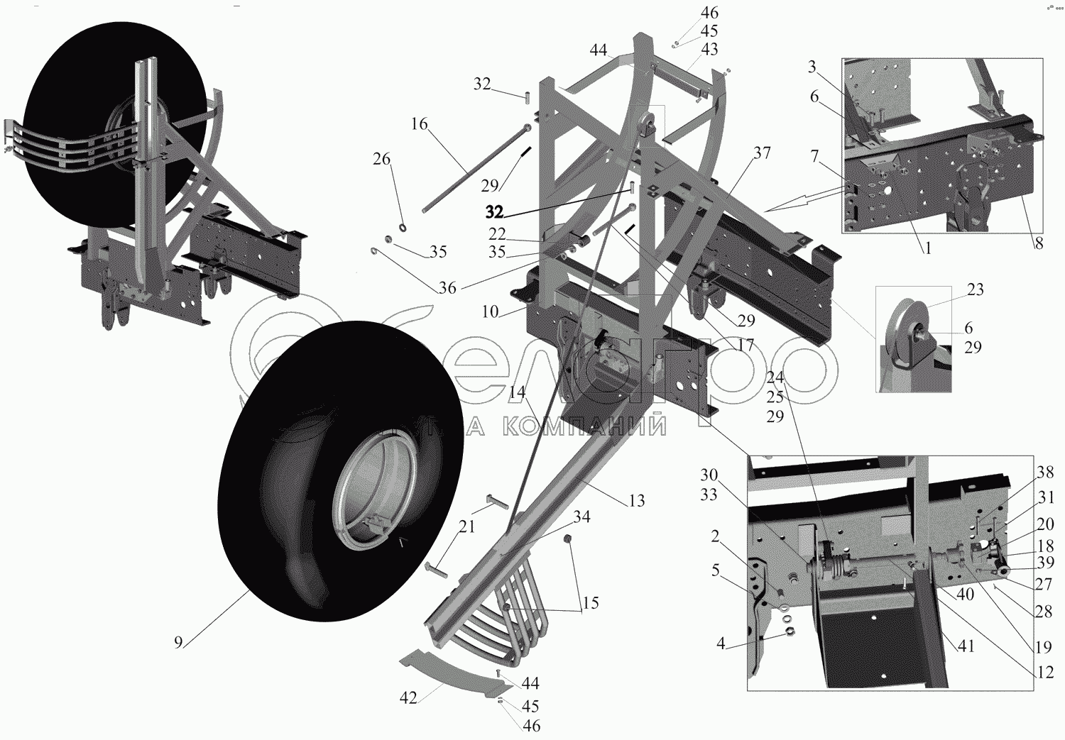 Каталог запасных частей к технике: МАЗ-631705. Установка запасного колеса 6317-3100001-050