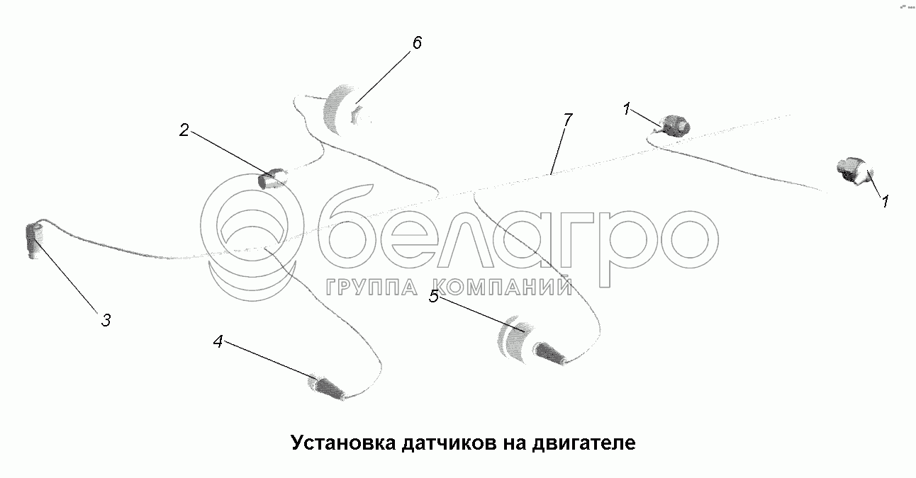 Каталог запасных частей к технике: МАЗ-631705, 631708. Электрооборудование\Установка датчиков на двигателе