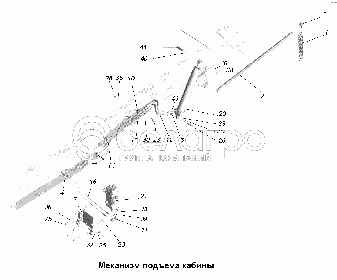 Каталог запасных частей к технике: МАЗ-631705, 631708. Кабина\Механизм подъема кабины