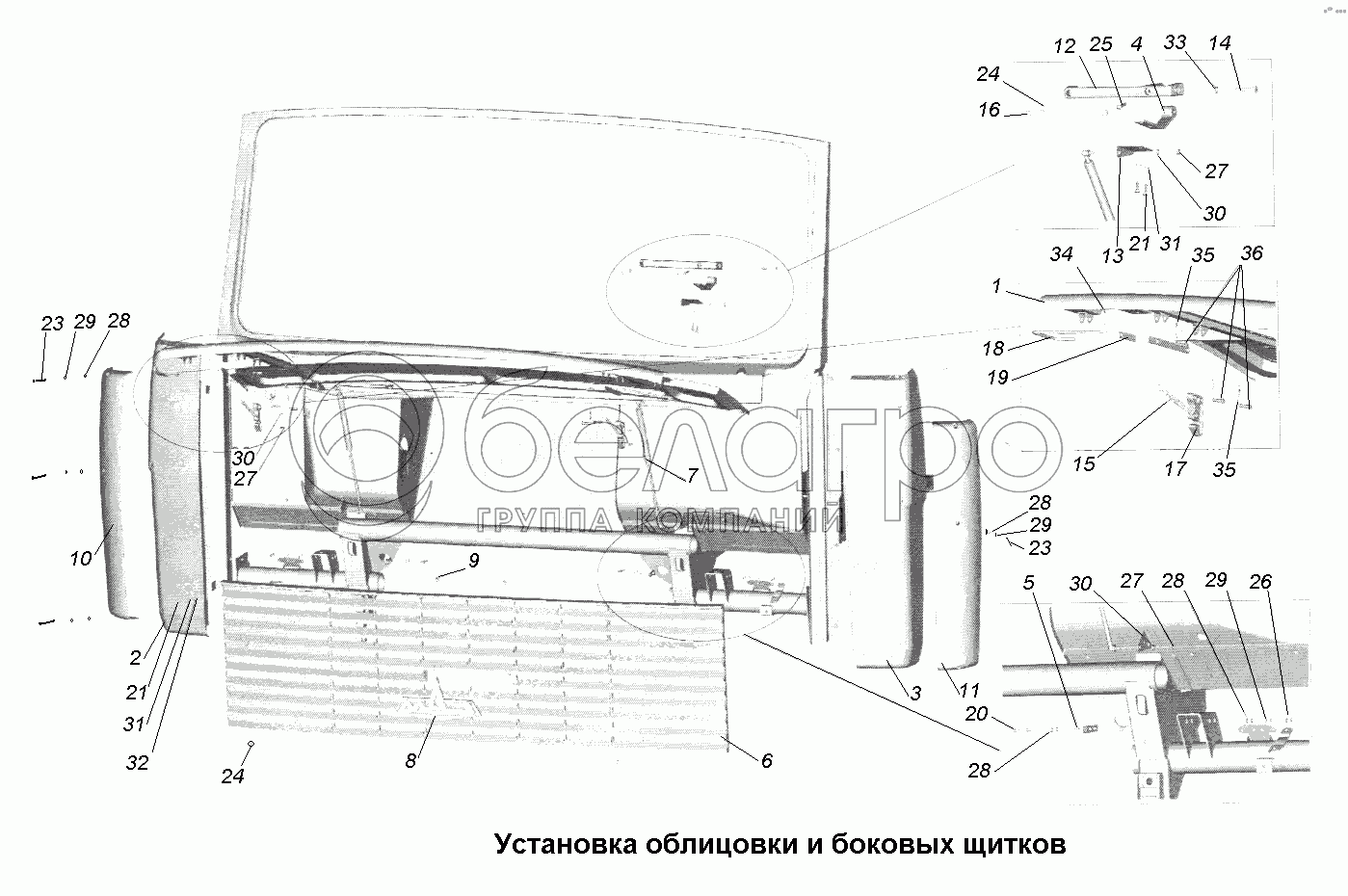 Каталог запасных частей к технике: МАЗ-631705, 631708. Кабина\Установка облицовки и боковых щитков