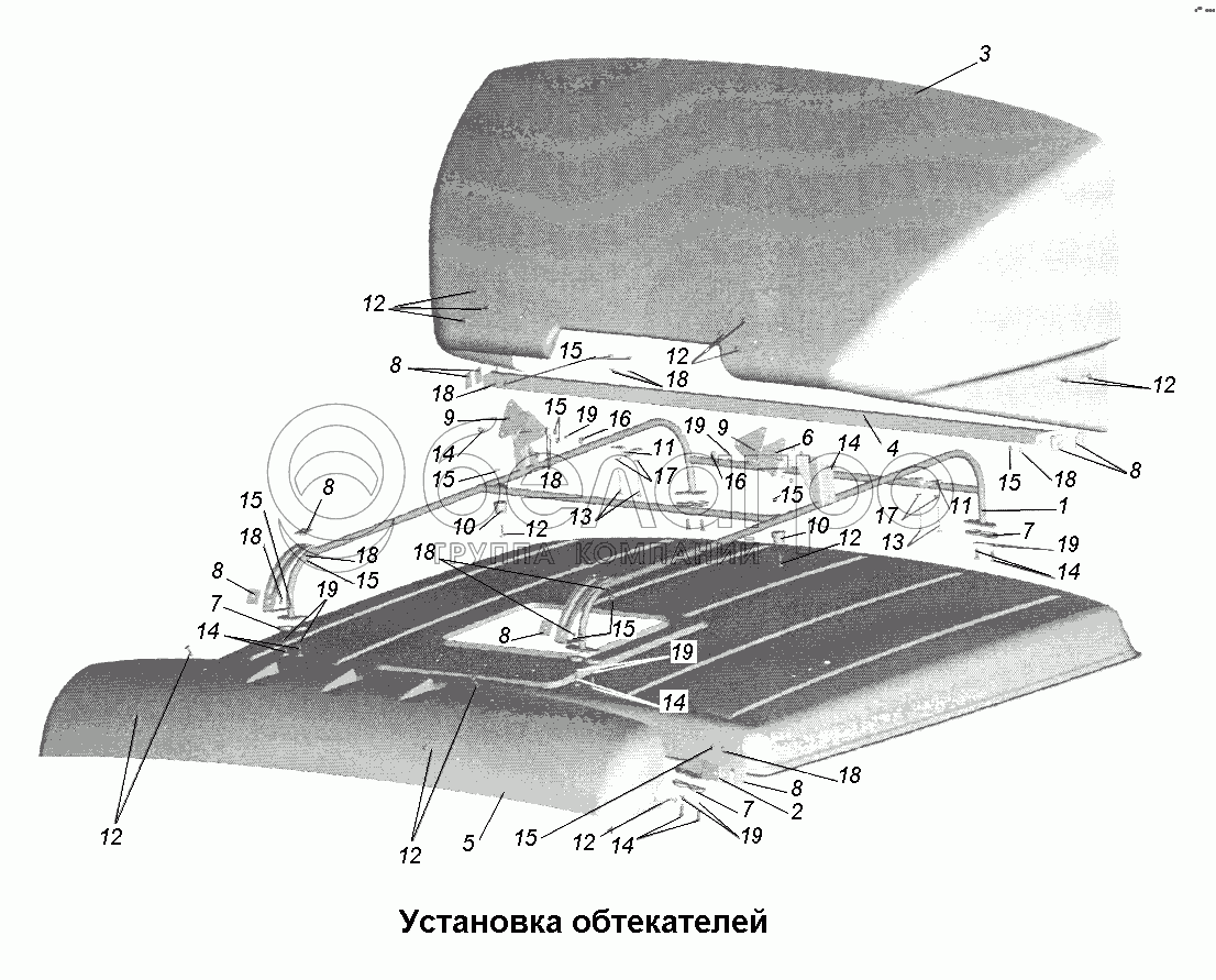 Каталог запасных частей к технике: МАЗ-631705, 631708. Кабина\Установка обтекателей