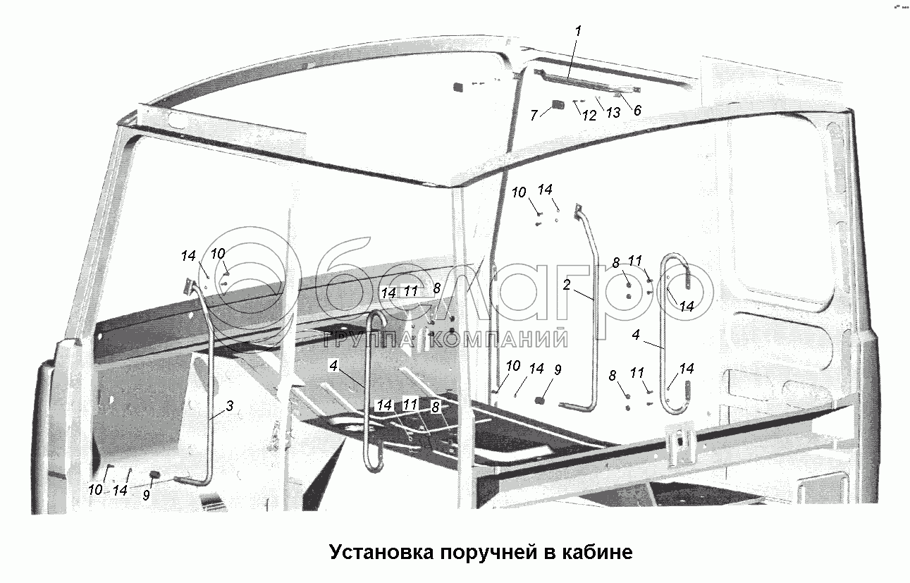 Каталог запасных частей к технике: МАЗ-631705, 631708. Кабина\Установка поручней в кабине