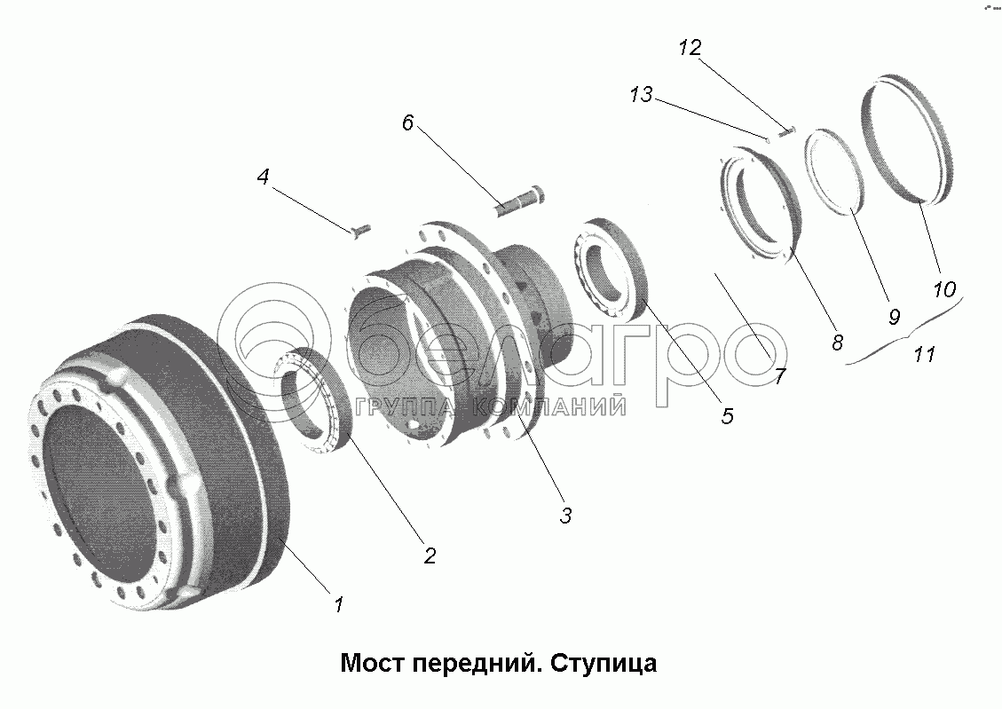 Каталог запасных частей к технике: МАЗ-631705, 631708. Мост передний\Мост передний. Ступица.