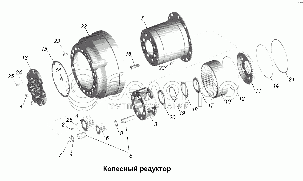 Каталог запасных частей к технике: МАЗ-631705, 631708. Мост задний\Колесный редуктор