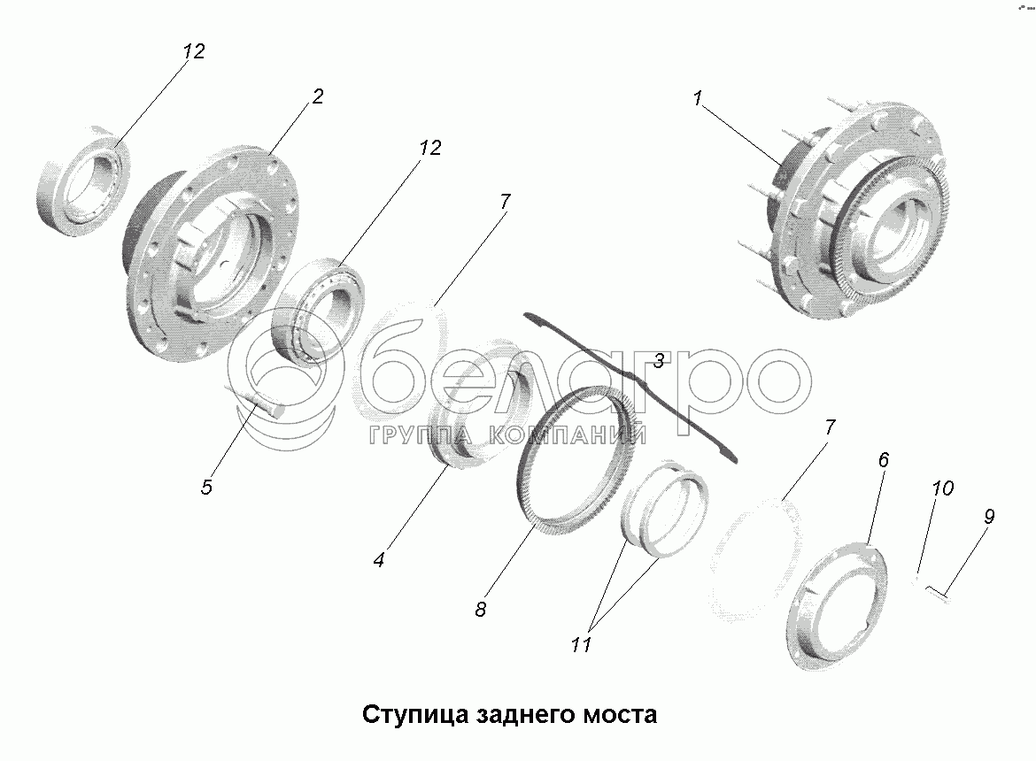 Каталог запасных частей к технике: МАЗ-631705, 631708. Мост задний\Ступица заднего моста