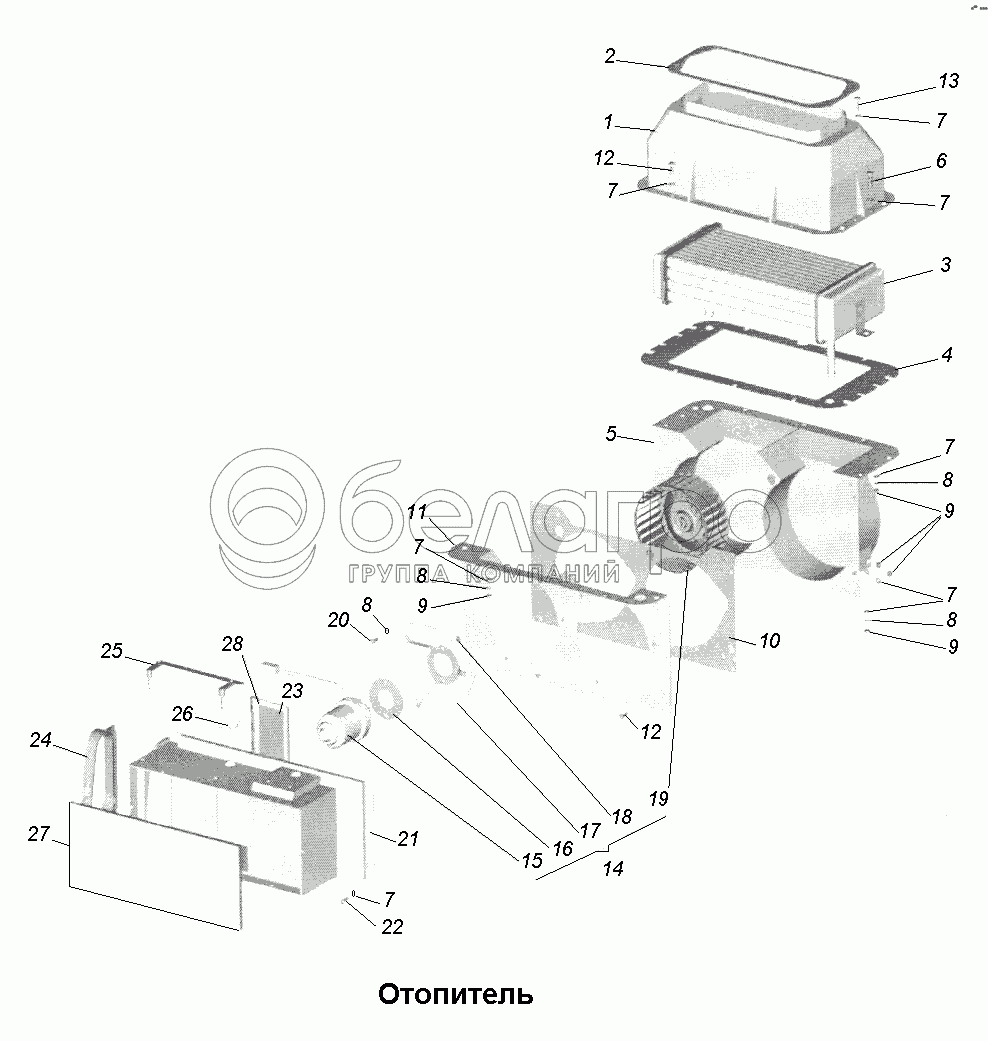 Каталог запасных частей к технике: МАЗ-631705, 631708. Отопление\Отопитель