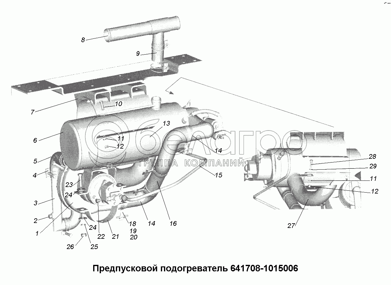 Каталог запасных частей к технике: МАЗ-631705, 631708. Предпусковой подогреватель 641708-1015006