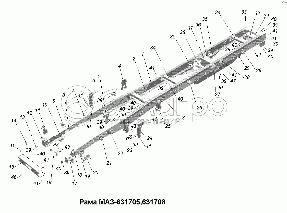 Каталог запасных частей к технике: МАЗ-631705, 631708. Рама\Рама МАЗ-631705,631708