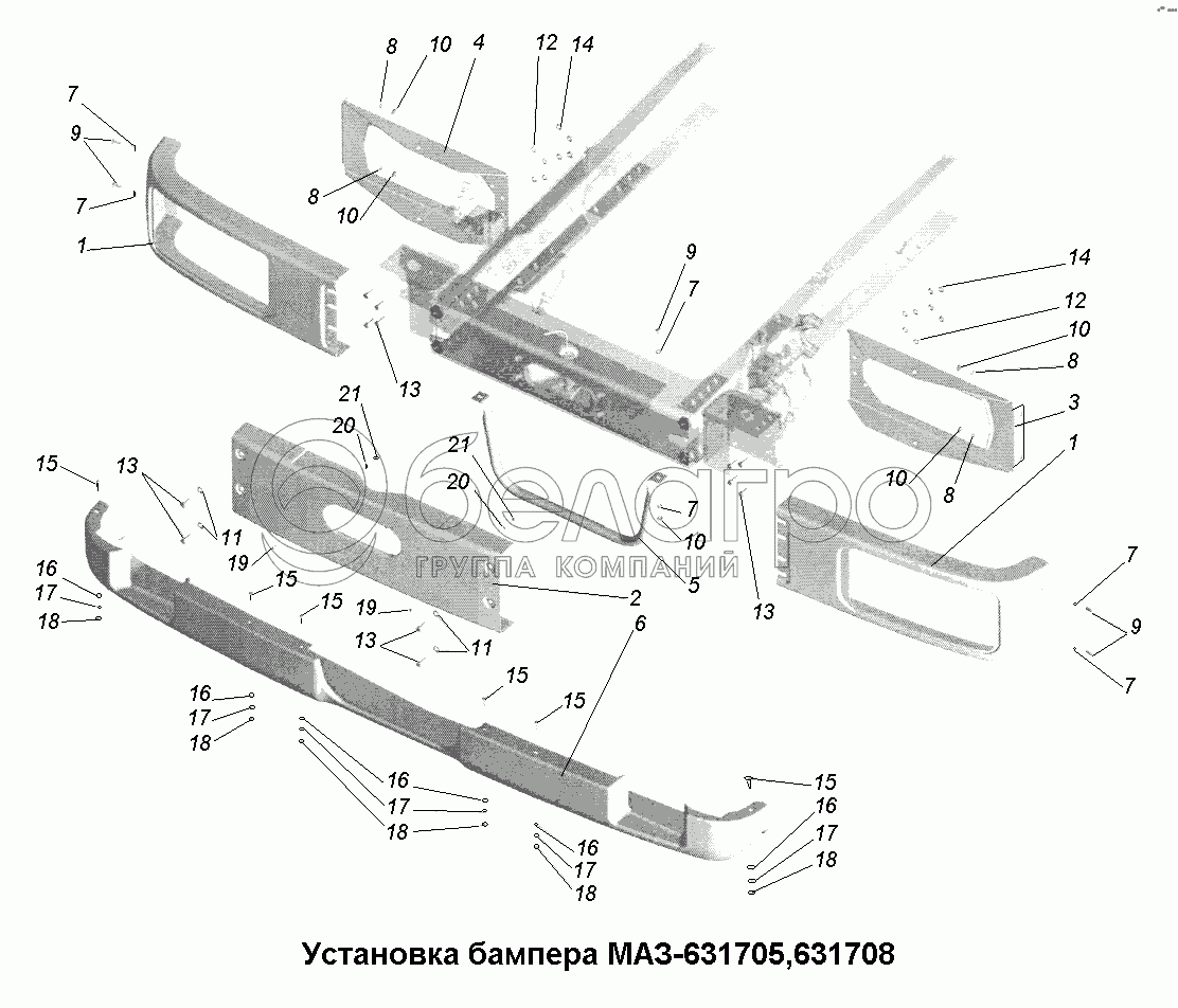 Каталог запасных частей к технике: МАЗ-631705, 631708. Рама\Установка бампера МАЗ-631705,631708
