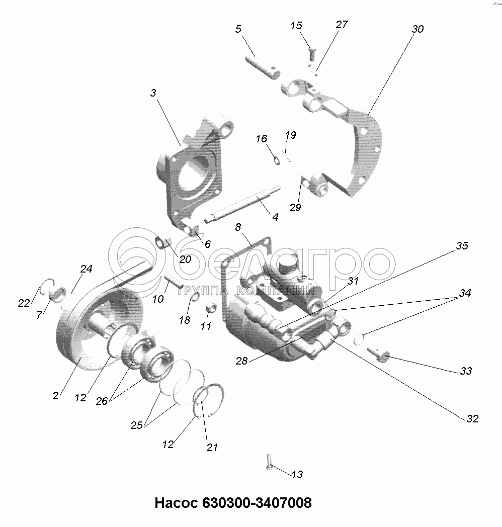 Каталог запасных частей к технике: МАЗ-631705, 631708. Рулевое управление\Насос 630300-34070008