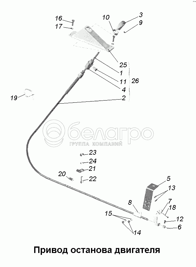 Каталог запасных частей к технике: МАЗ-631705, 631708. Система питания\Привод останова двигателя