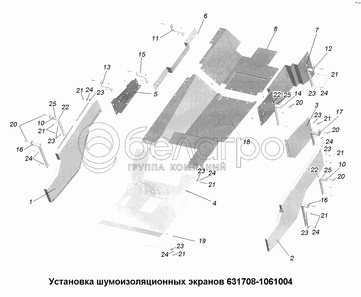 Каталог запасных частей к технике: МАЗ-631705, 631708. Установка шумоизоляционных экранов 631708-1061004