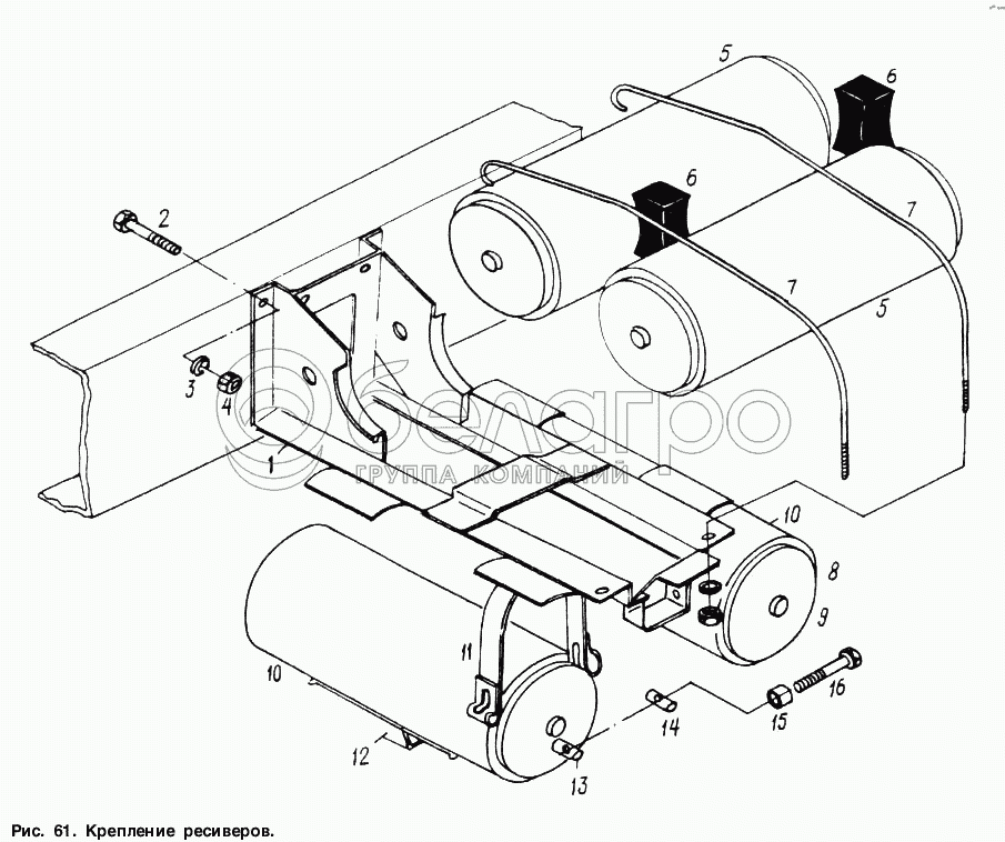 Каталог запасных частей к технике: МАЗ-6317. Крепление ресиверов