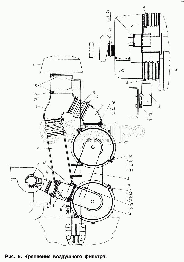 Каталог запасных частей к технике: МАЗ-6317. Крепление воздушного фильтра
