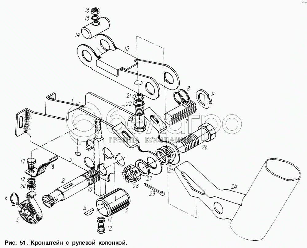 Каталог запасных частей к технике: МАЗ-6317. Кронштейн с рулевой колонкой