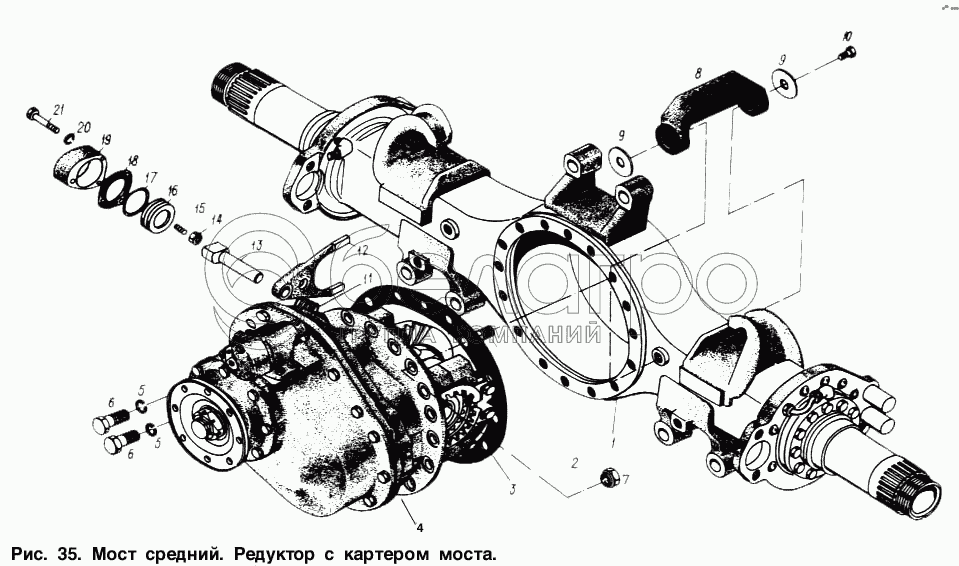 Каталог запасных частей к технике: МАЗ-6317. Мост средний. Редуктор с картером моста