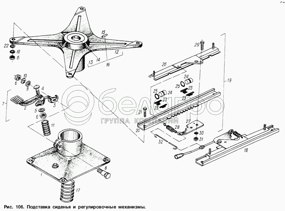 Каталог запасных частей к технике: МАЗ-6317. Подставка сиденья и регулировочные механизмы