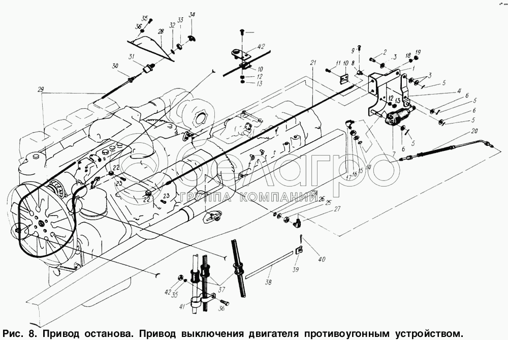 Каталог запасных частей к технике: МАЗ-6317. Привод останова. Привод выключения двигателя противоугонным устройством