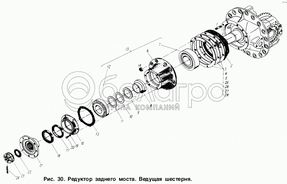 Каталог запасных частей к технике: МАЗ-6317. Редуктор заднего моста. Ведущая шестерня