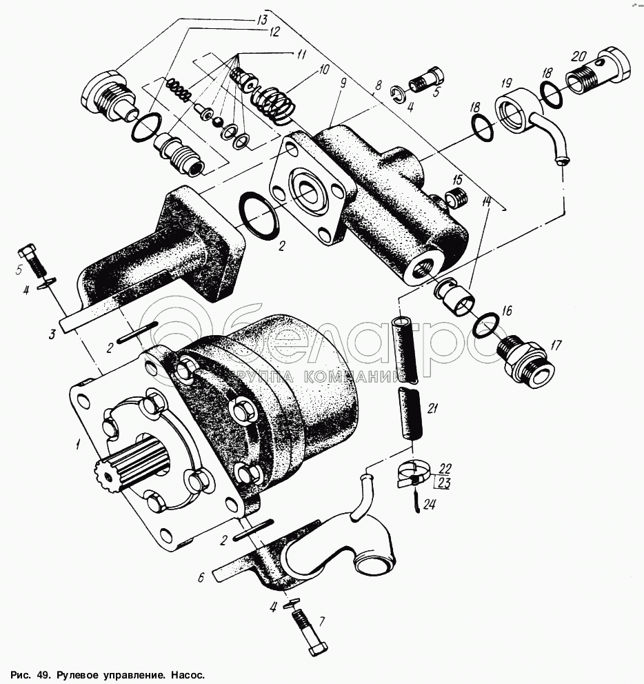 Каталог запасных частей к технике: МАЗ-6317. Рулевое управление. Насос