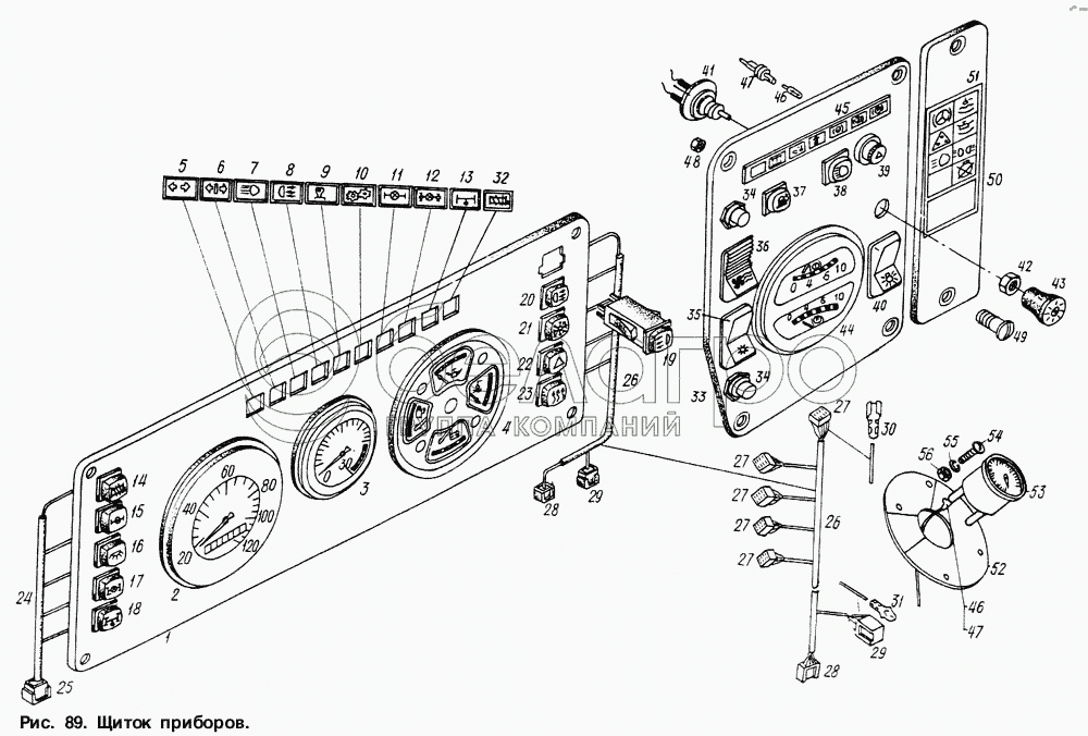 Каталог запасных частей к технике: МАЗ-6317. Щиток приборов