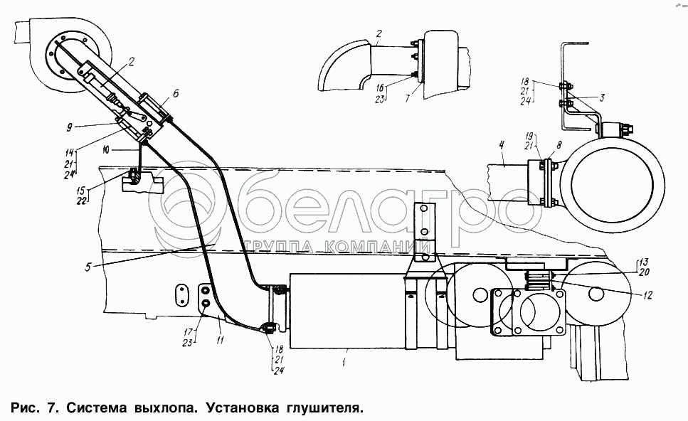 Каталог запасных частей к технике: МАЗ-6317. Система выхлопа. Установка глушителя