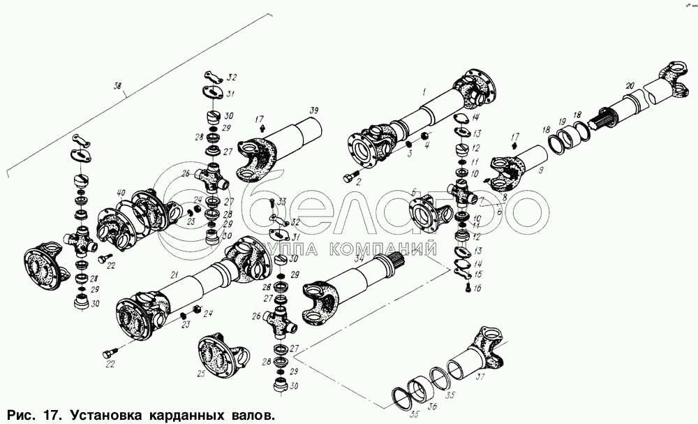 Каталог запасных частей к технике: МАЗ-6317. Установка карданных валов