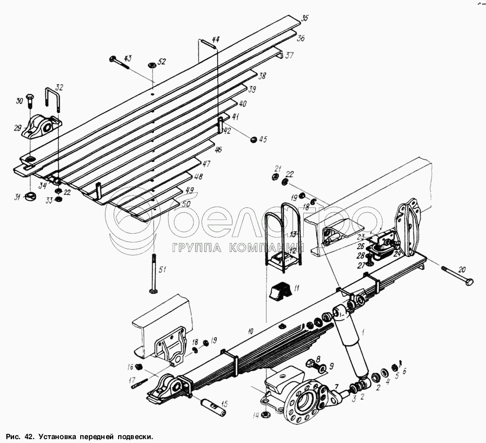 Каталог запасных частей к технике: МАЗ-6317. Установка передней подвески
