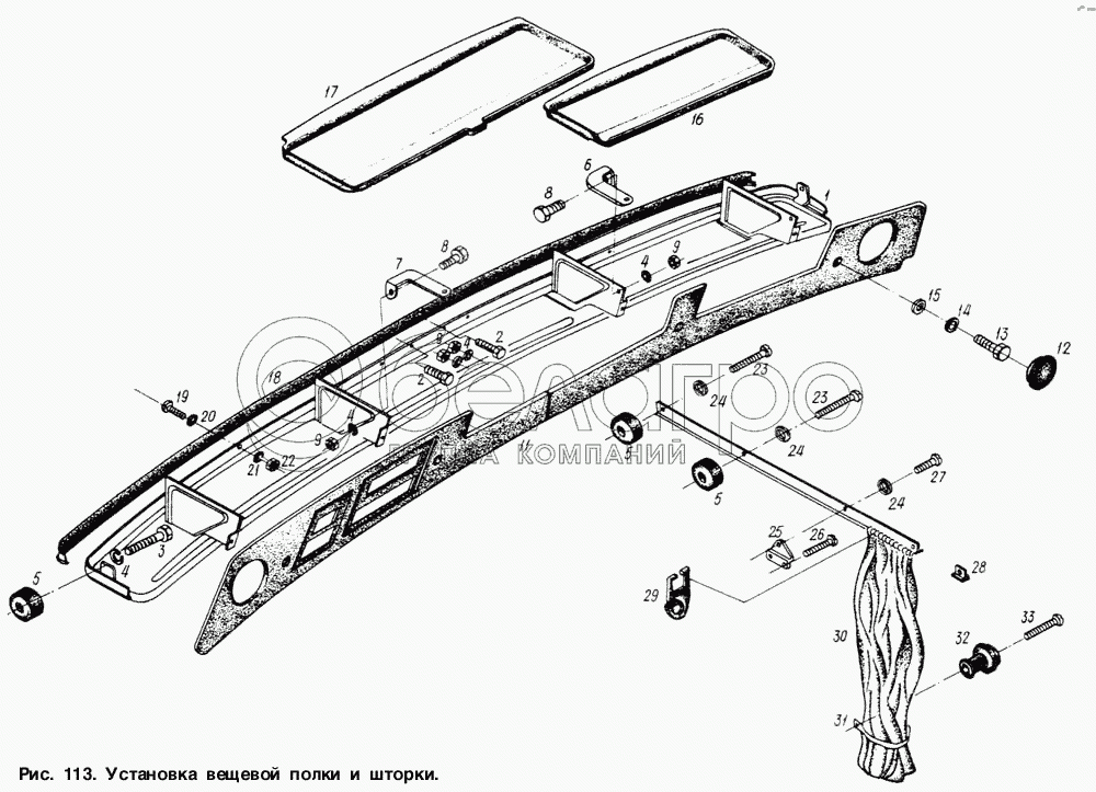 Каталог запасных частей к технике: МАЗ-6317. Установка вещевой полки и шторки