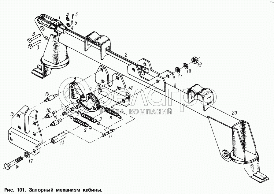 Каталог запасных частей к технике: МАЗ-6317. Запорный механизм кабины