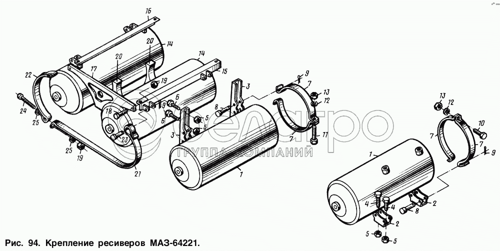 Каталог запасных частей к технике: МАЗ-64221. Крепление ресиверов МАЗ-64221