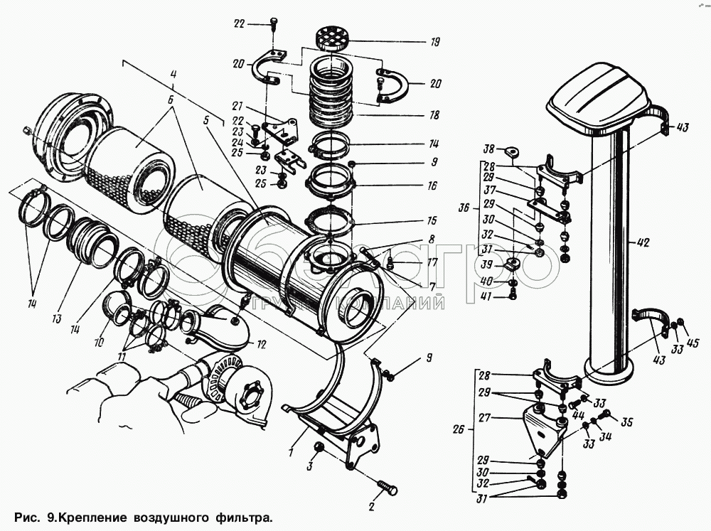 Каталог запасных частей к технике: МАЗ-64221. Крепление воздушного фильтра