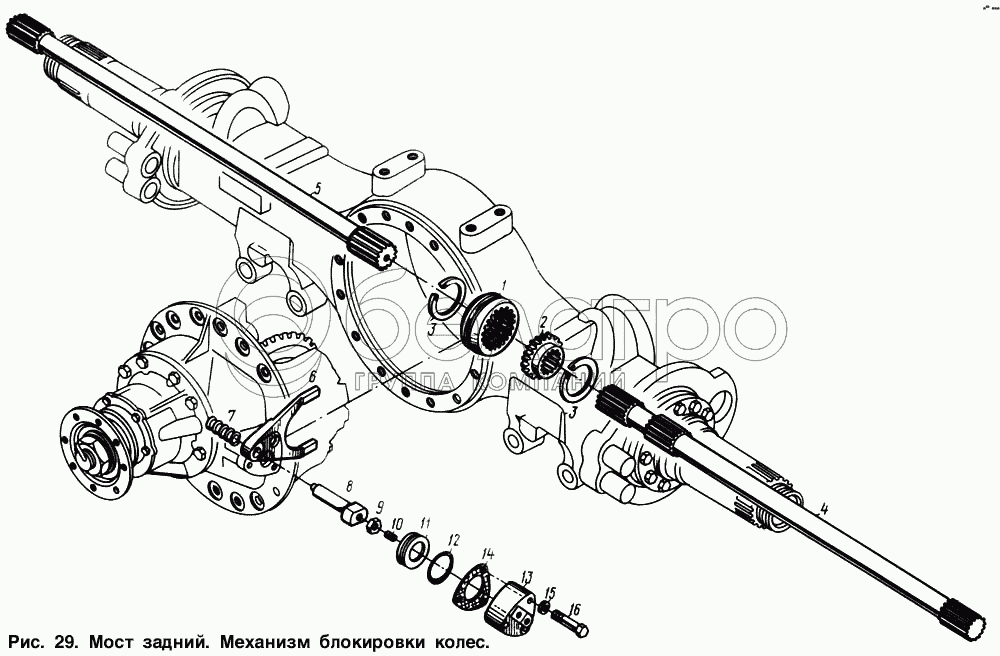 Каталог запасных частей к технике: МАЗ-64221. Мост задний. Механизм блокировки колес