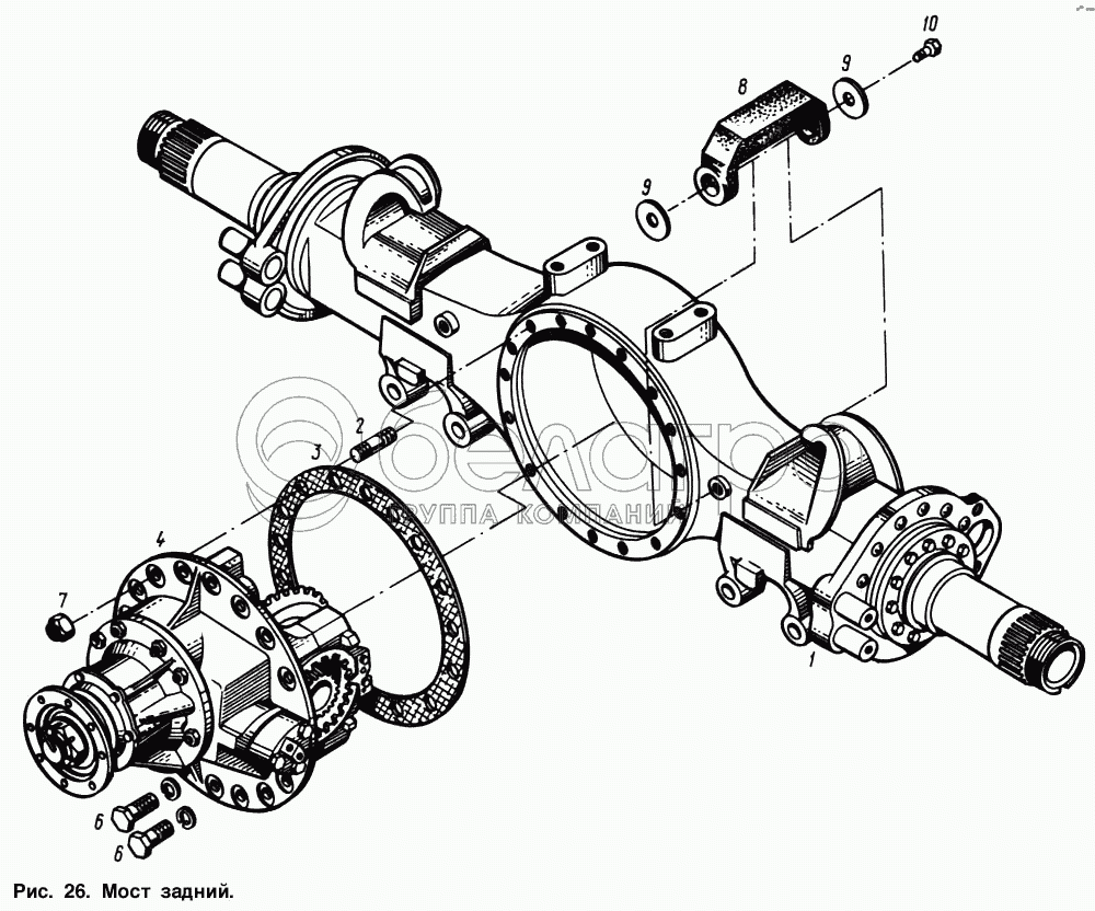 Каталог запасных частей к технике: МАЗ-64221. Мост задний. Редуктор с картером моста