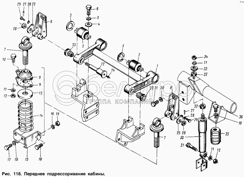 Каталог запасных частей к технике: МАЗ-64221. Переднее подрессоривание кабины