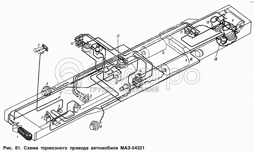 Каталог запасных частей к технике: МАЗ-64221. Схема тормозного привода автомобиля МАЗ-54321