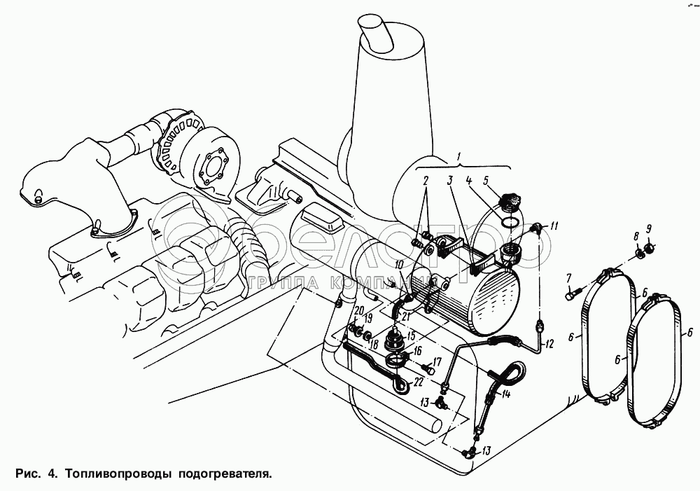 Каталог запасных частей к технике: МАЗ-64221. Топливопроводы подогревателя