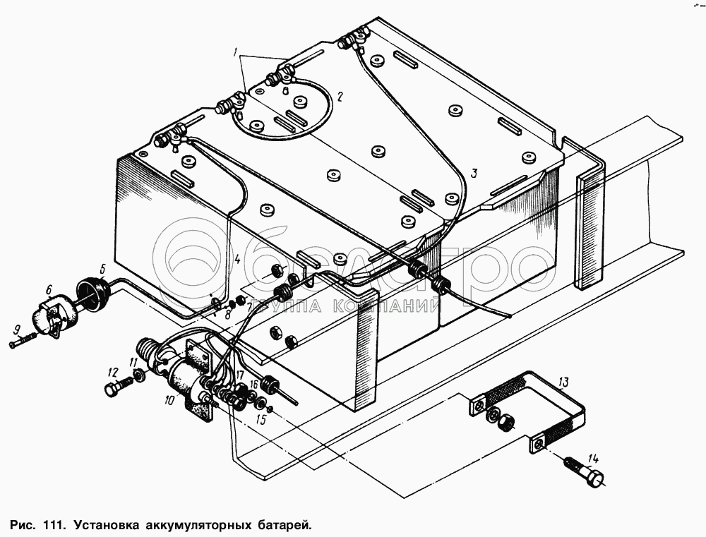 Каталог запасных частей к технике: МАЗ-64221. Установка аккумуляторных батарей
