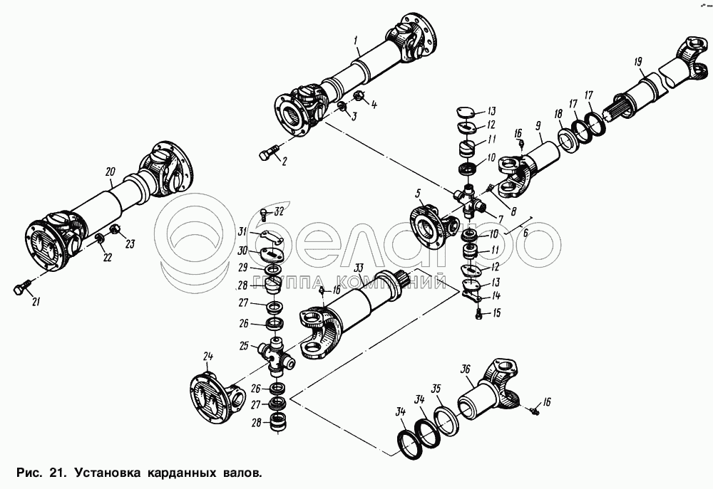 Каталог запасных частей к технике: МАЗ-64221. Установка карданных валов