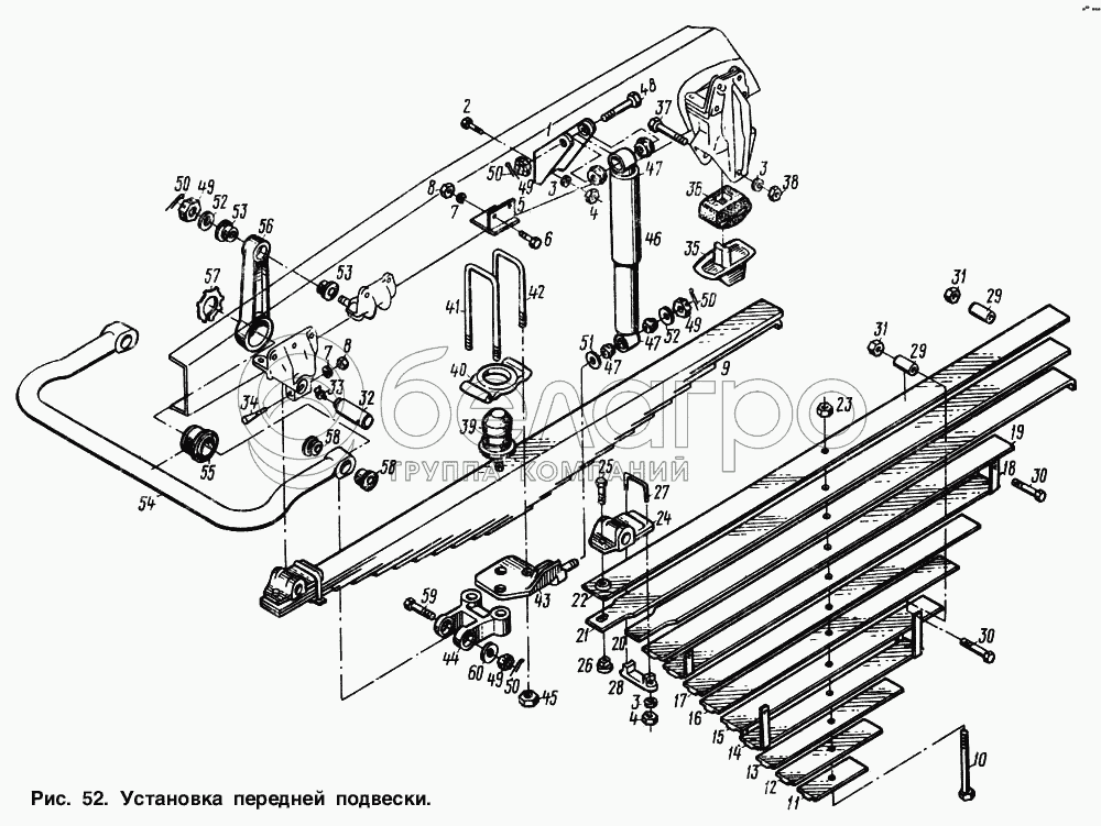 Каталог запасных частей к технике: МАЗ-64221. Установка передней подвески