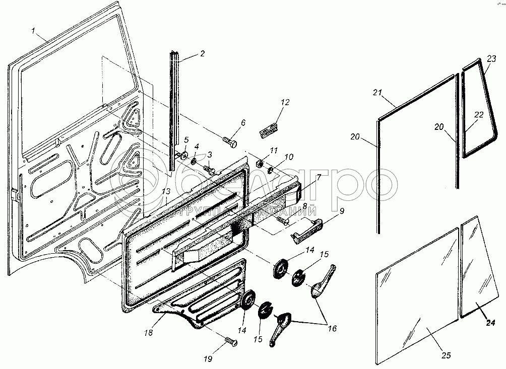 Каталог запасных частей к технике: МАЗ-64226. Дверь кабины