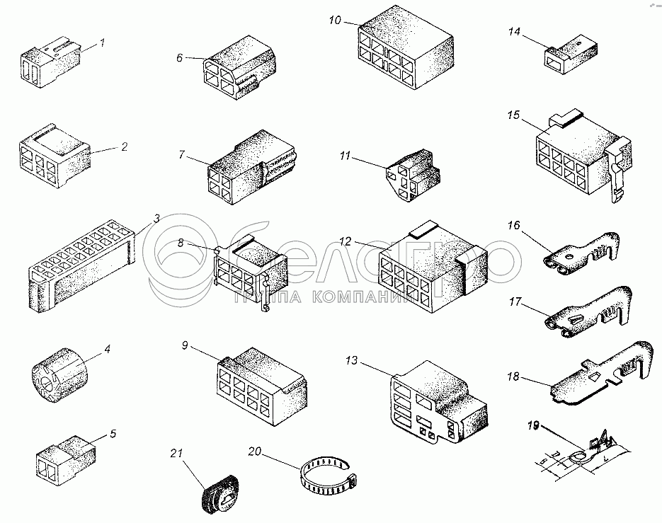 Каталог запасных частей к технике: МАЗ-64226. Колодки, контакты, наконечники