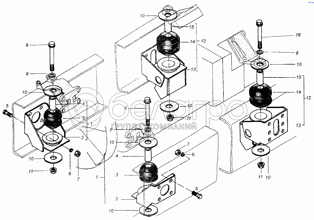 Каталог запасных частей к технике: МАЗ-64226. Крепление двигателя