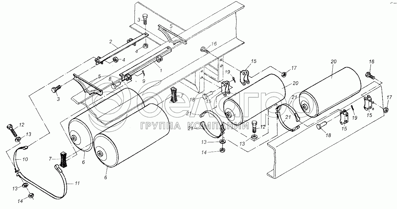 Каталог запасных частей к технике: МАЗ-64226. Крепление ресиверов МАЗ-64226