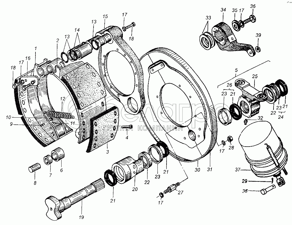 Каталог запасных частей к технике: МАЗ-64226. Тормозной механизм заднего колеса