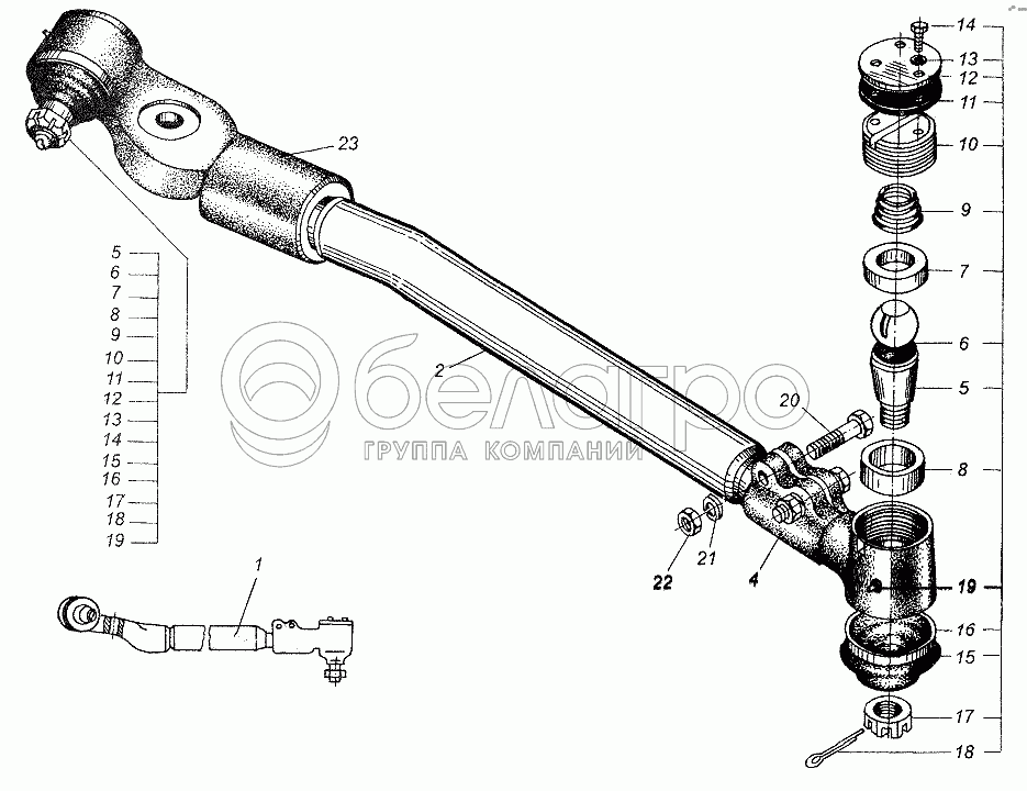 Каталог запасных частей к технике: МАЗ-64226. Тяга продольная рулевая