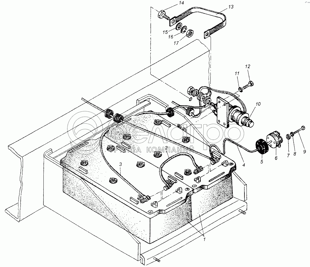 Каталог запасных частей к технике: МАЗ-64226. Установка аккумуляторных батарей