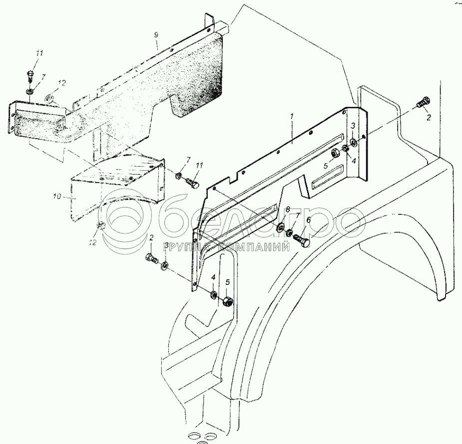 Каталог запасных частей к технике: МАЗ-64226. Установка боковых экранов